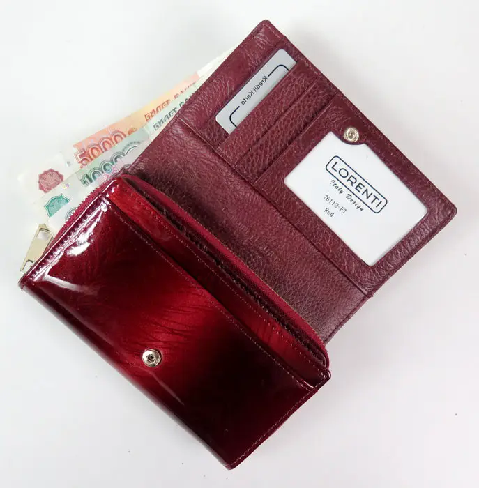 Внутри: боковое отделение для купюр.
