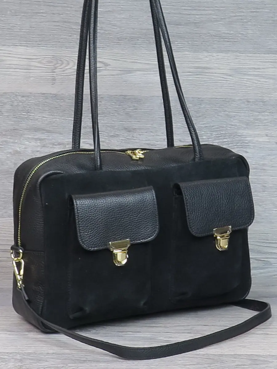 Женская сумочка с ручками Италия из натуральной кожи и замши.