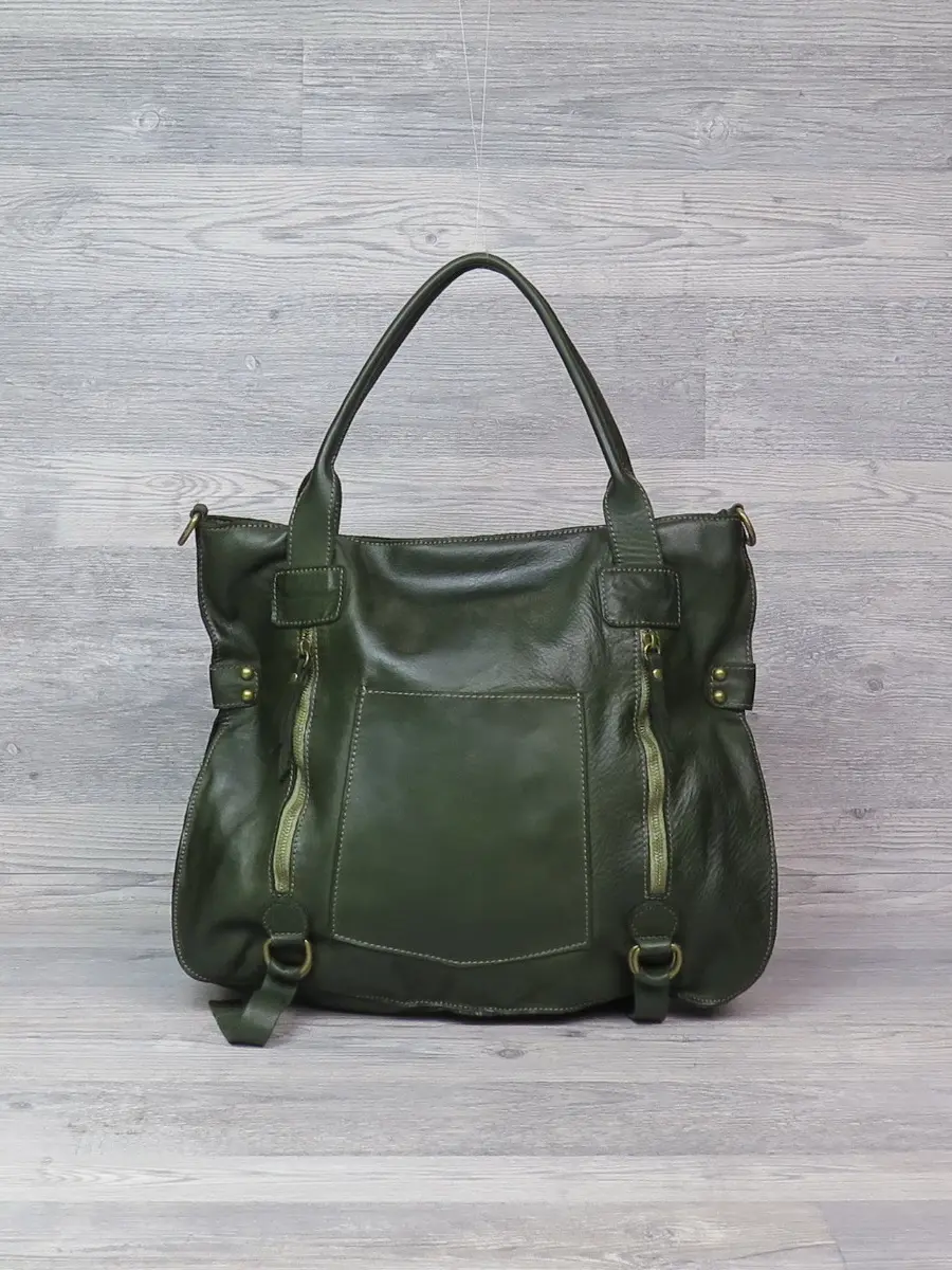 Женская сумка с ручками из натуральной кожи.
