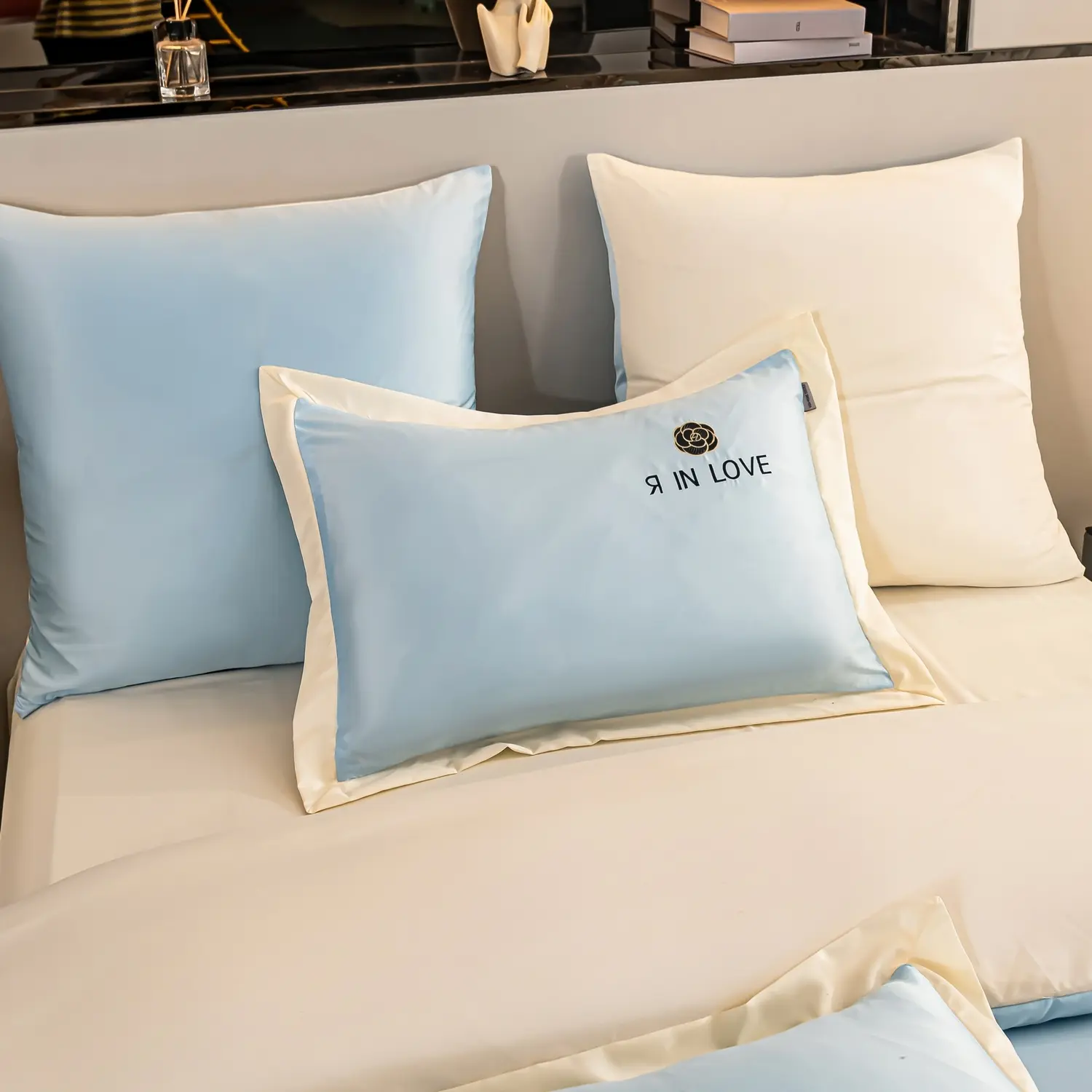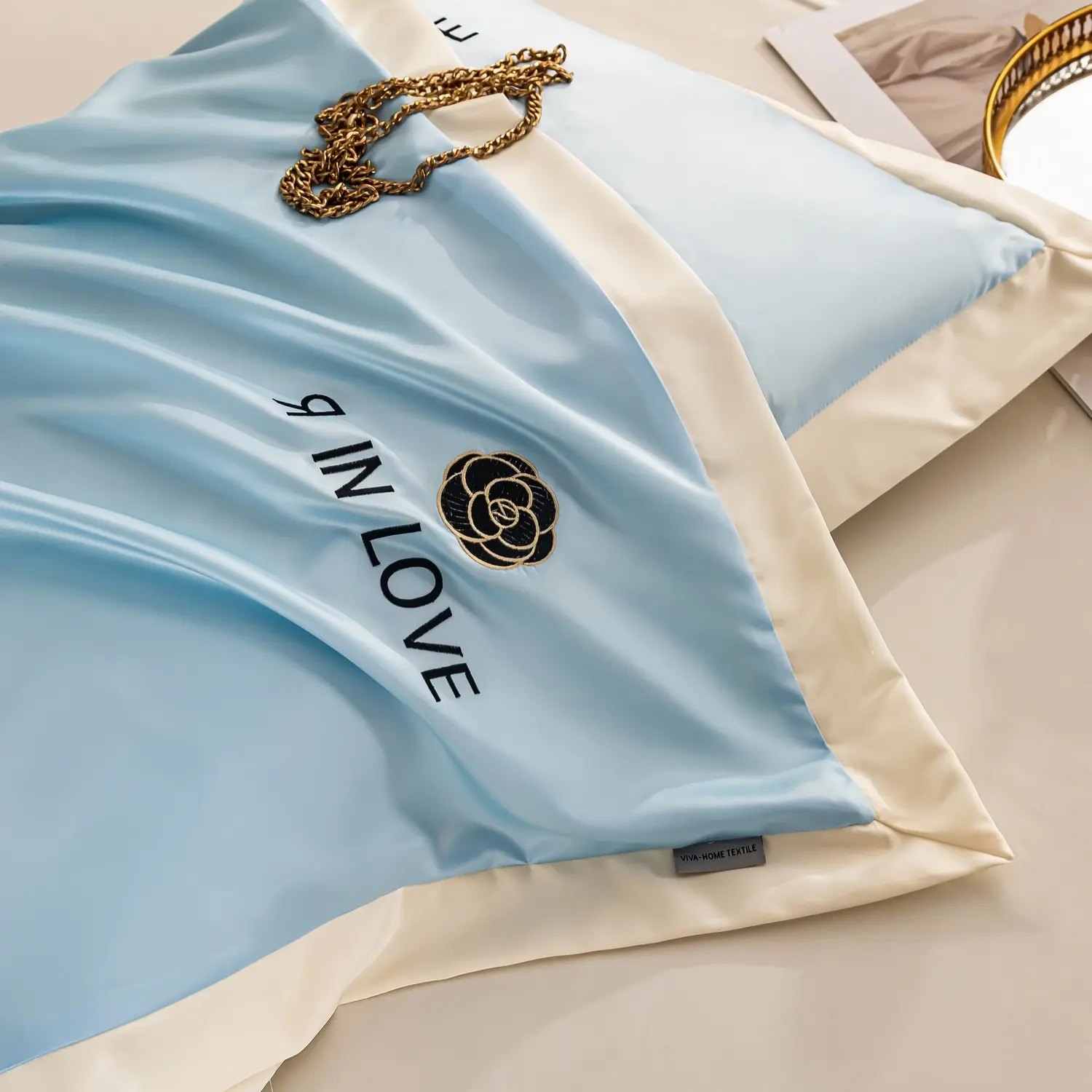 Наволочки с разных сторон разной ткани: верх - шелк, низ - сатин.