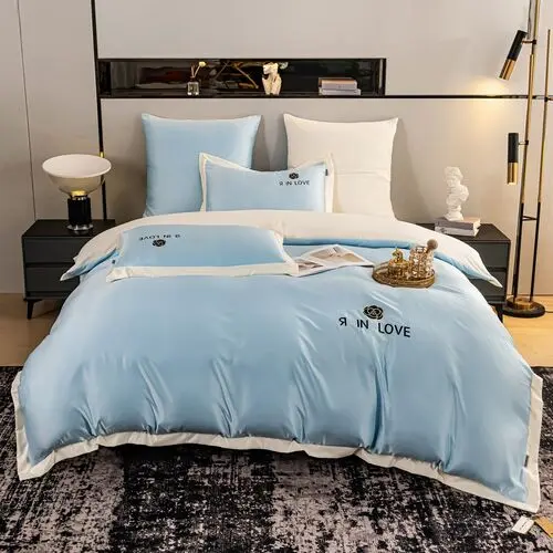 Простыня сатин однотонный такого же цвета и ткани, как низ пододеяльника;