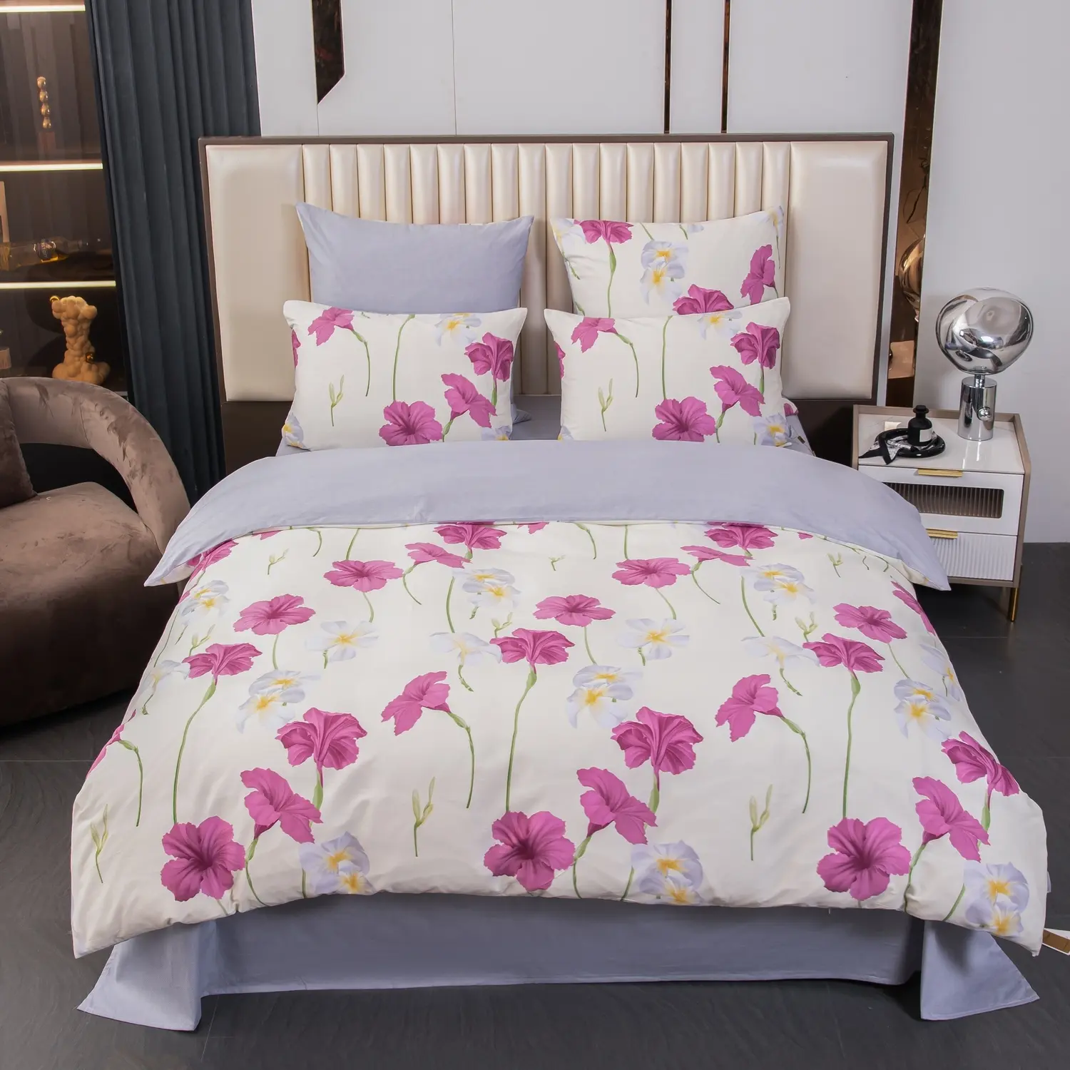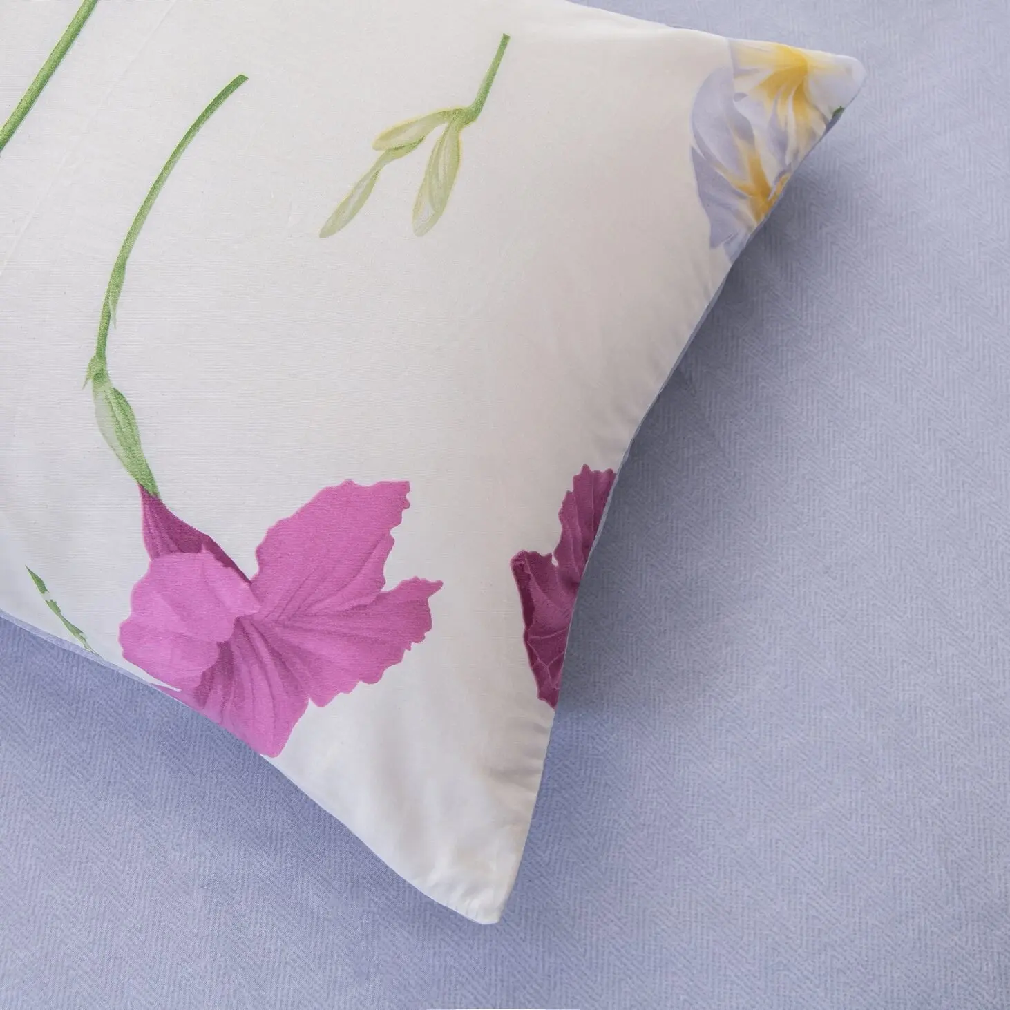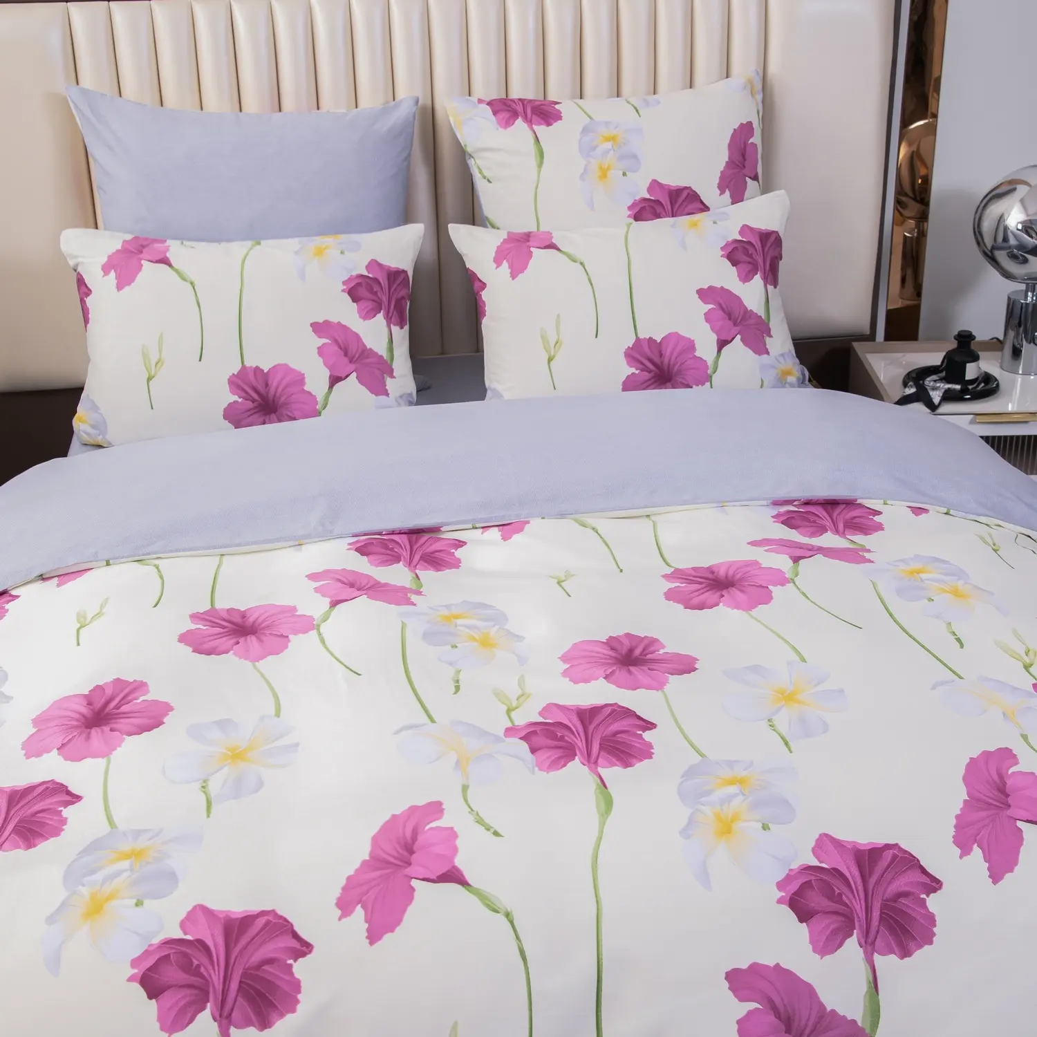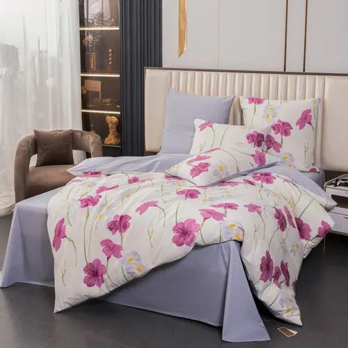 Ткань компаньон: Наволочки с разных сторон разной расцветки, пододеяльник с разных сторон разного цвета, простыня такого же цвета, как низ пододеяльника.