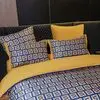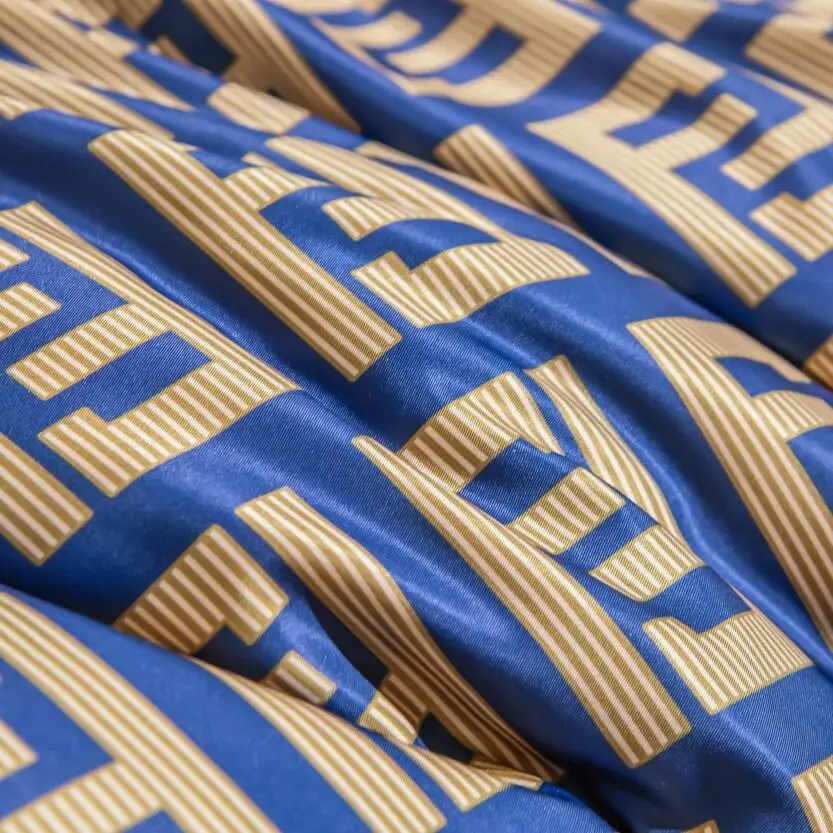 Ткань компаньон: Верх пододеяльника - мерсеризованный сатин, низ пододеяльника - сатин. Наволочки 50*70 см и 70*70 см с разных сторон разной расцветки. Пододеяльник с разных сторон разного цвета. Простыня однотонная такого же цвета, как низ пододеяльника.