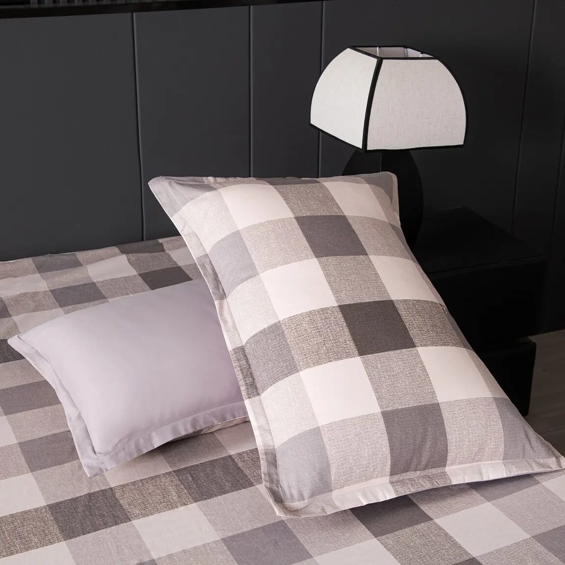Ткань компаньон: Одеяло и наволочки 70x70 с разных сторон разной расцветки и ткани; наволочки 50x70 с разных сторон разной расцветки (принт/однотонный); простыня такого же цвета, как низ одеяла.