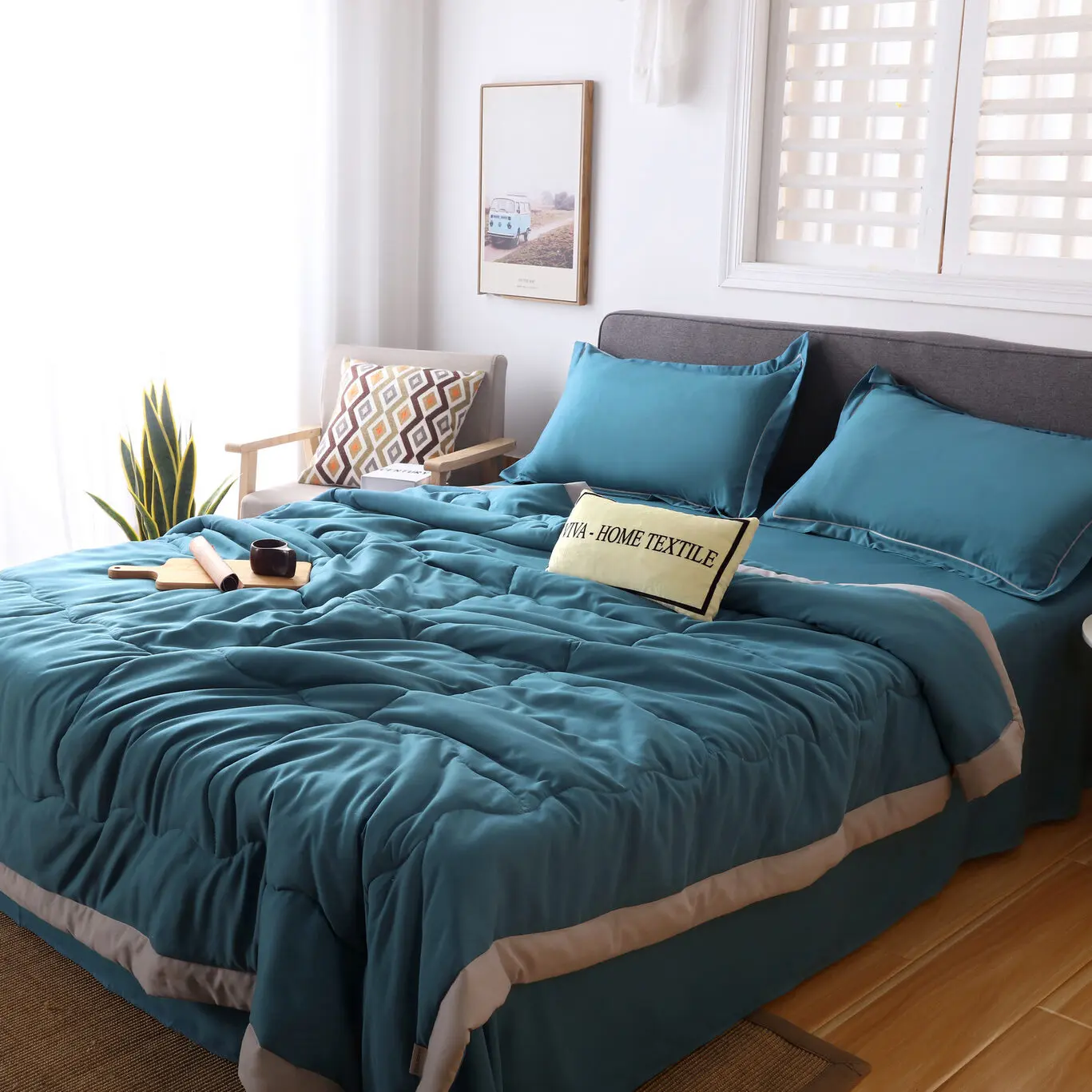 Одеяло-покрывало и наволочки: Украшены широким кантом по периметру